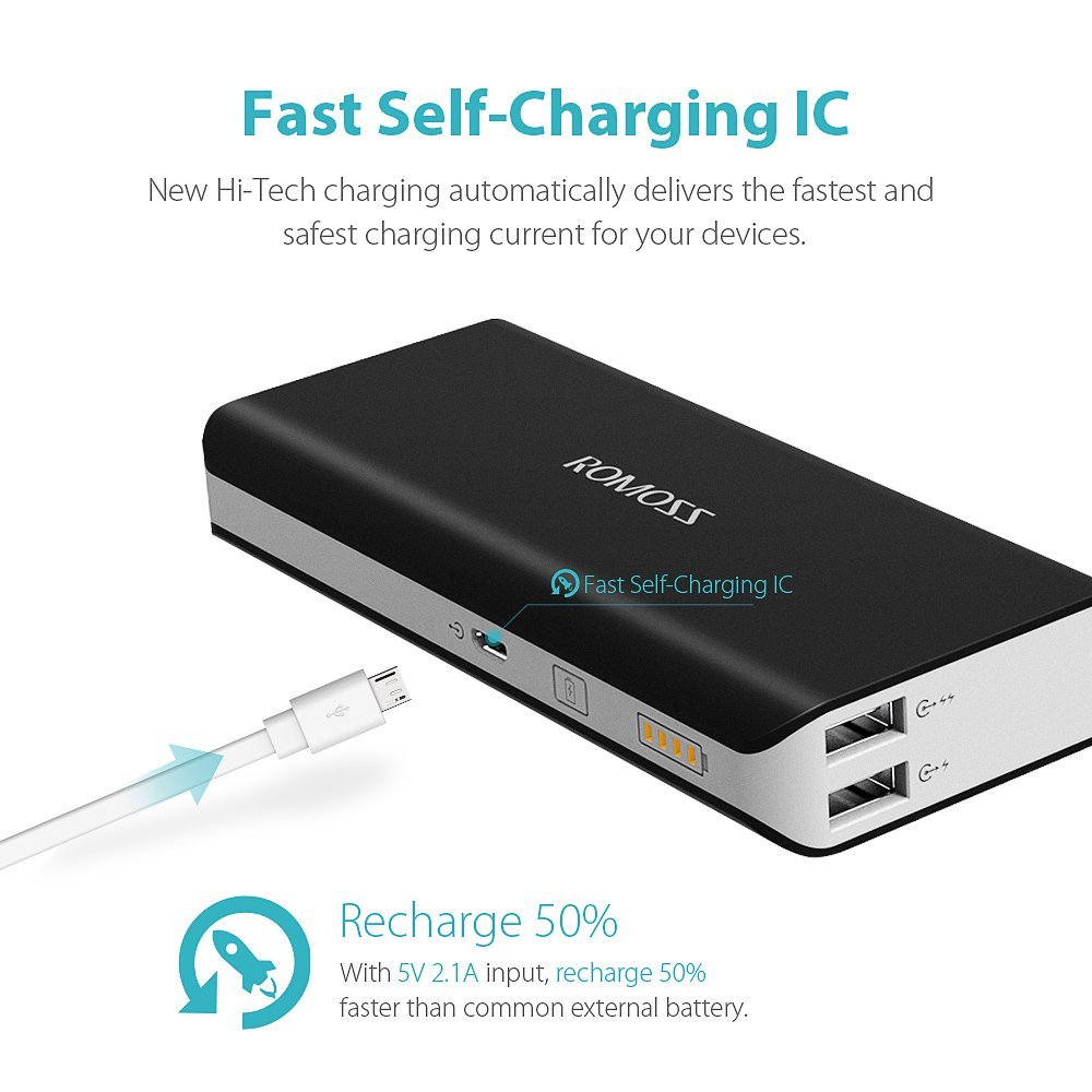 Acumulatorul extern Romoss Solo 5 , 10000 mAh , dual USB, este unul dintre cele mai vandute baterii externe de pe piata.
