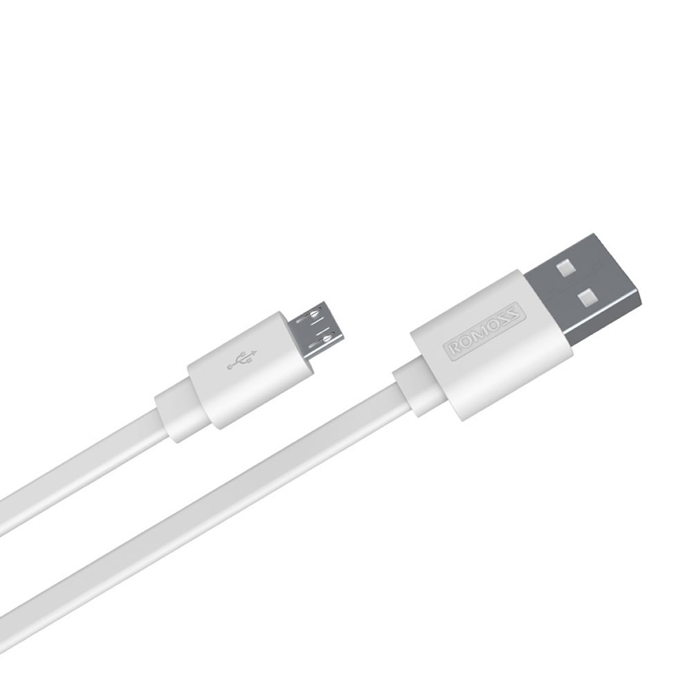 Cablu Romoss micro-USB , Data sync & 2.1A Quick charging, alb, 1m, compatibil cu telefoanele si tabletele Android