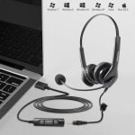 Casca cu microfon BS01, pentru Call Center, Skype VOIP, ZOOM, MEET, TEAM, negru