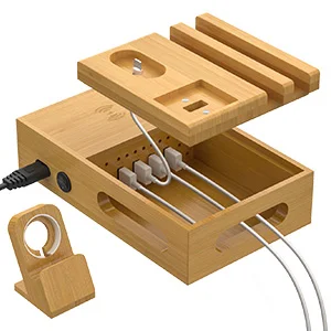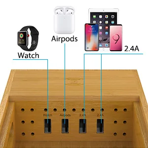 Statie de incarcare pentru iPhone, airpods si iWatch, incarcare wireless, bambus natural