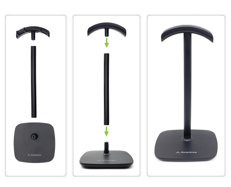 Avantree HS910 este livrat cu doar trei piese, ceea ce face instalarea acestuia rapidă și ușoară. Montarea durează mai puțin de un minut și nu necesită șuruburi sau unelte. Odată asamblat, suportul robust este gata să țină și să organizeze căștile intra-auriculare.
