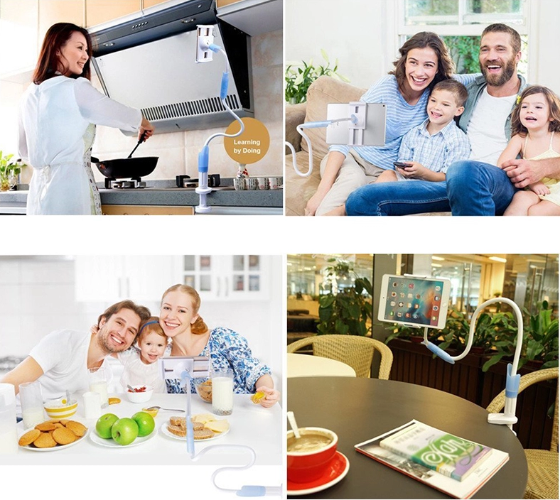 Suport flexibil MyTable pentru telefon sau tableta intre 4″ si 10.6″, rotire 360, lungime 1m, albastru/alb