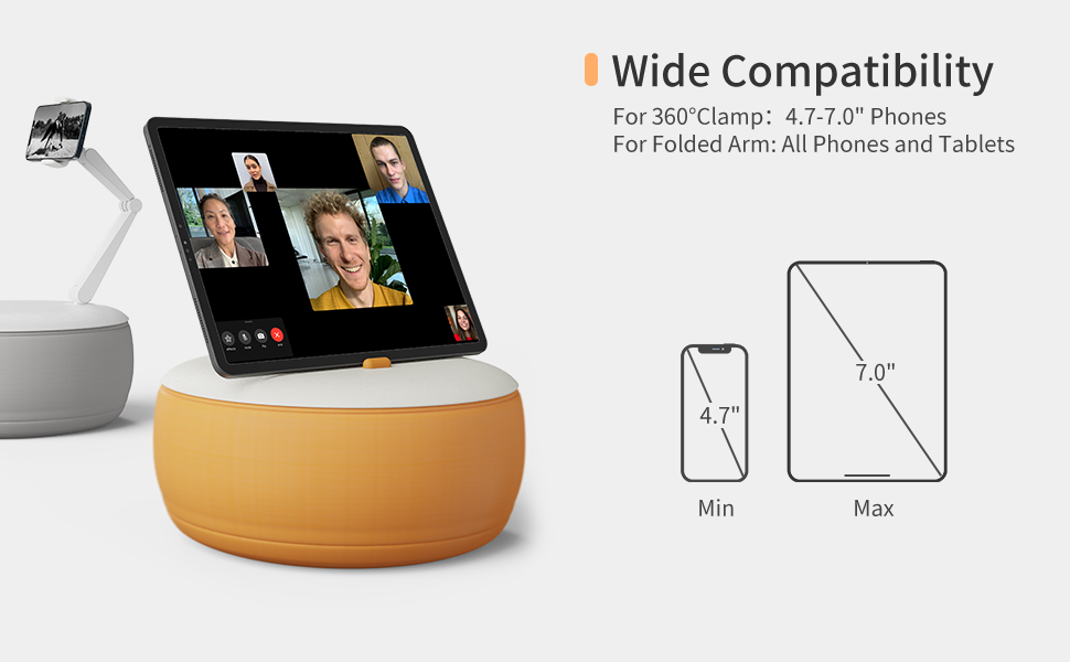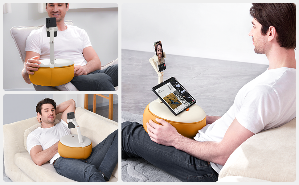 Suport portabil pentru telefon,cu perna, reglabil, portocaliu